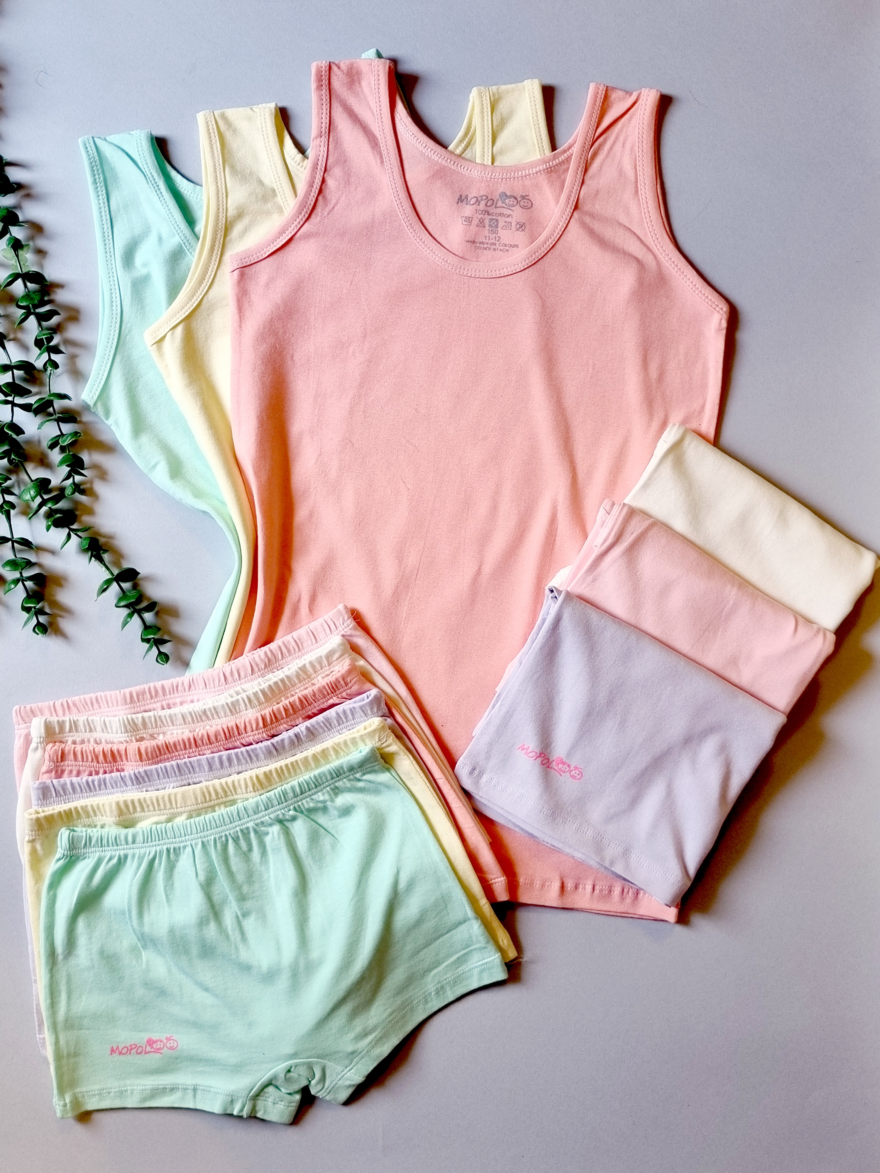 ست رکابی و شورت جنس نخ و پنبه و کشسانی دارد